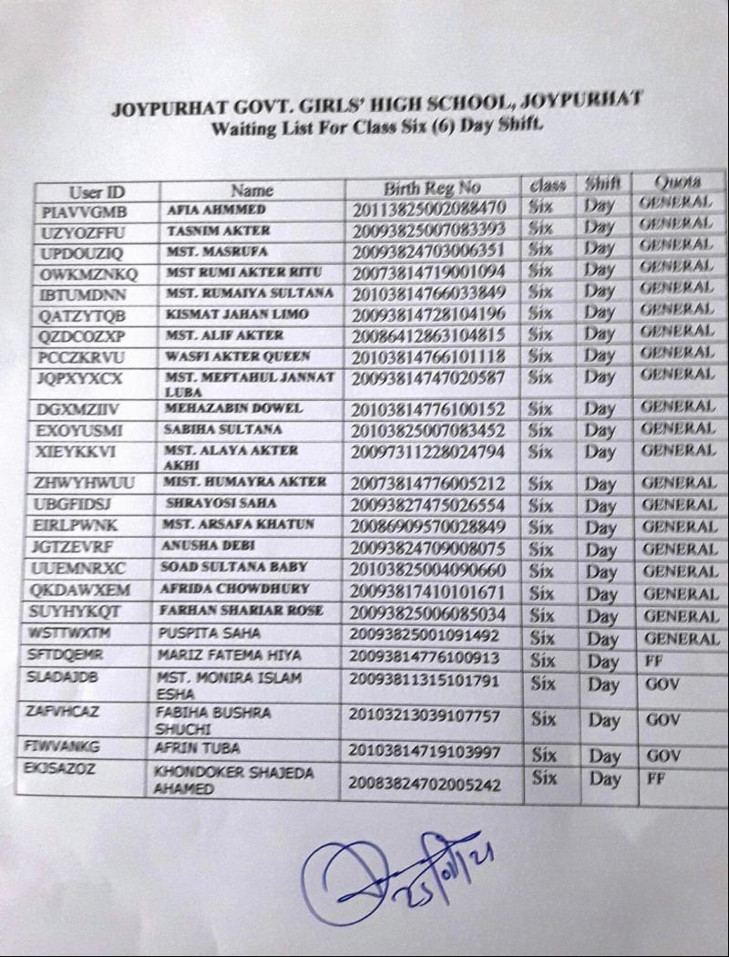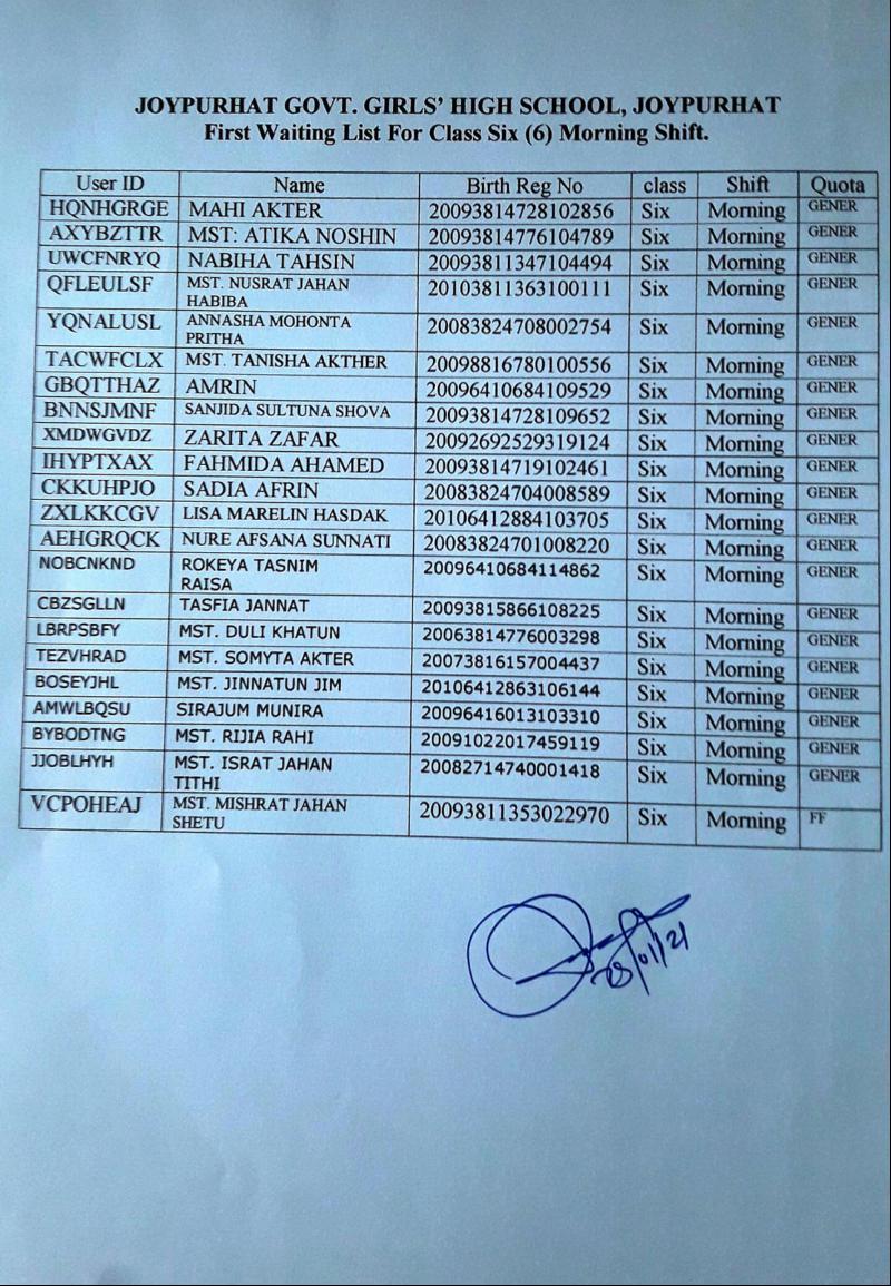 2021 শিক্ষাবর্ষে অপেক্ষমান তালিকা হতে শিক্ষার্থী ভর্তি
