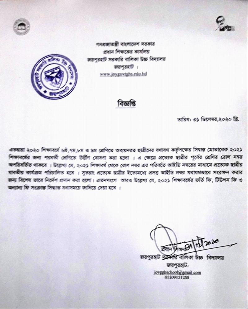 জয়পুরহাট সরকারি বালিকা উচ্চ বিদ্যালয়ের সকল রেজাল্ট অনুসন্ধান