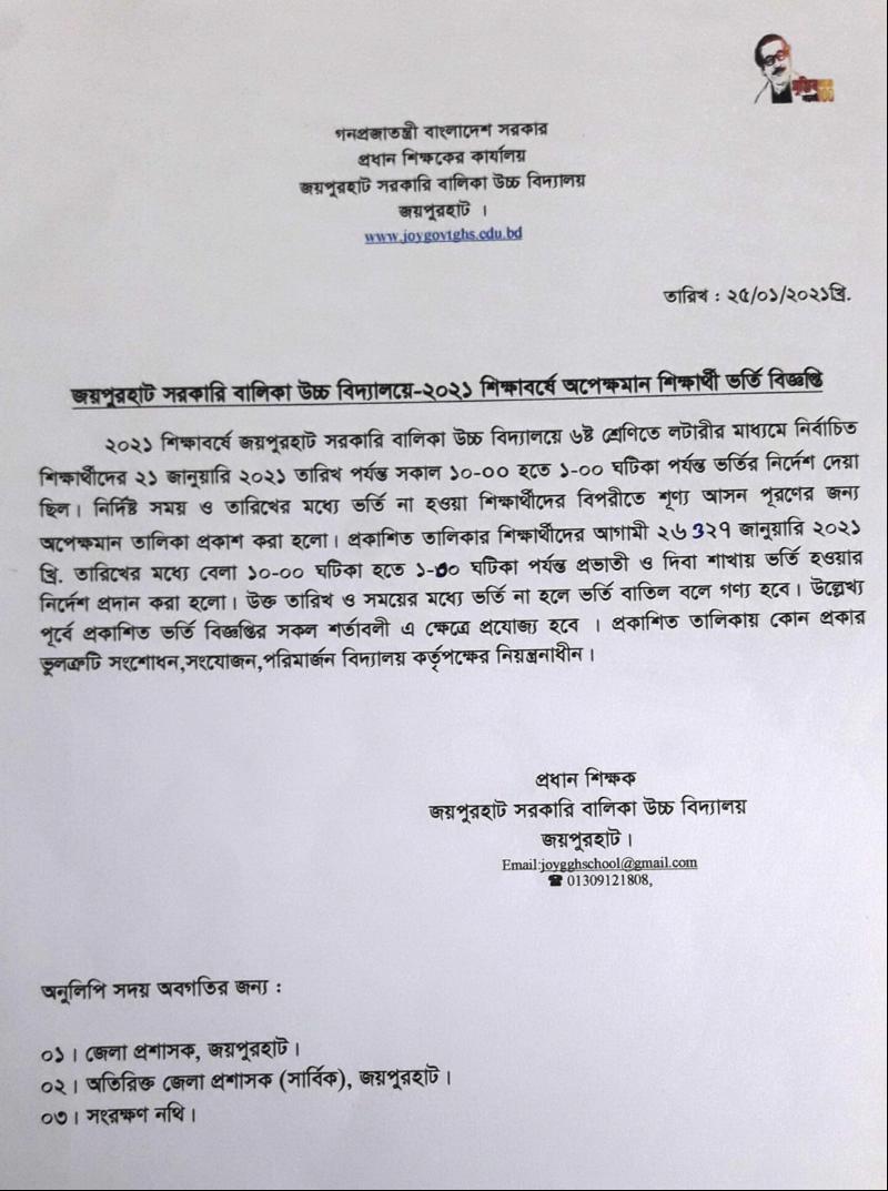 জয়পুরহাট সরকারি বালিকা উচ্চ বিদ্যালয়ের অফিসিয়াল ফেসবুক পেজ